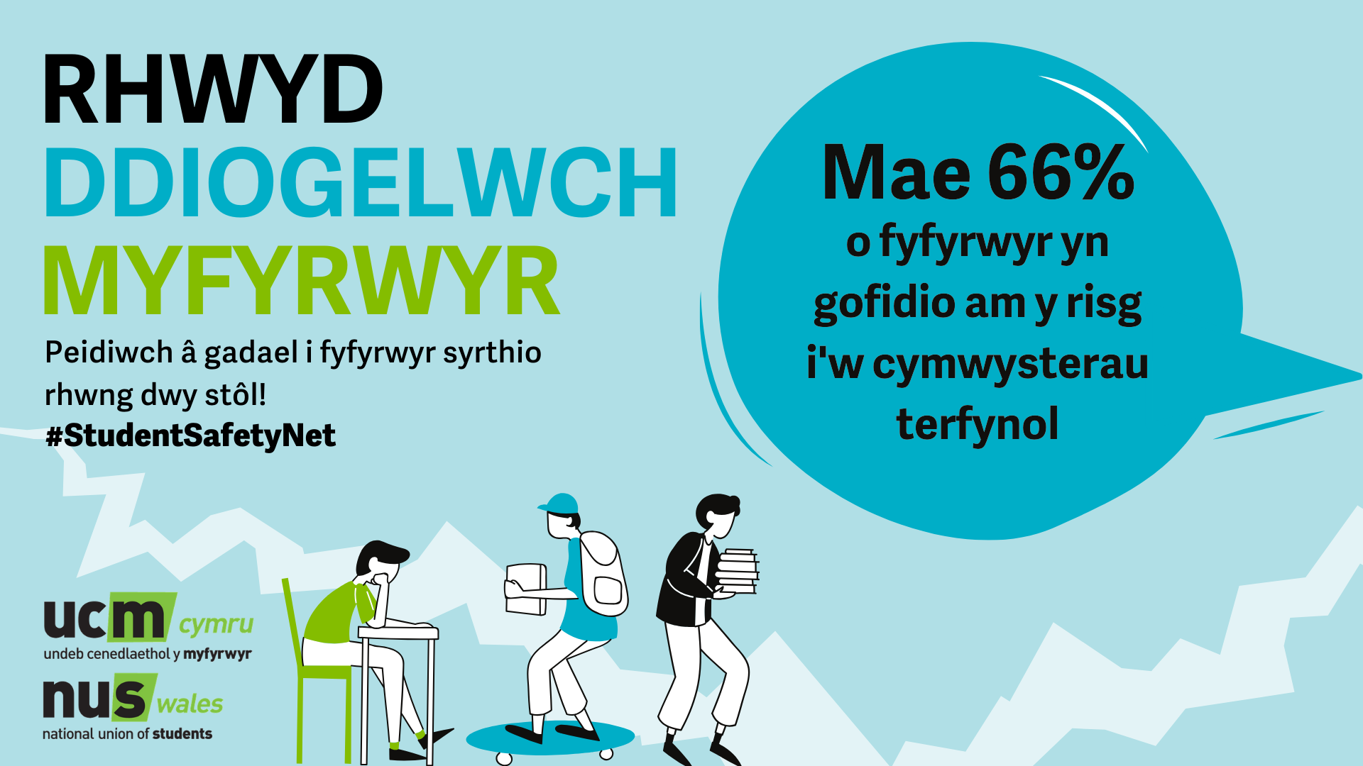 NUS Wales Student Safety Net Graphic: Statistic 1 (Cymraeg)